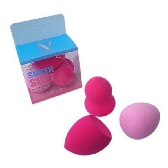 O Kit de Esponjas para Maquiagem Super Soft da Vivai é super macia, ideal para ser usado na área dos olhos ou em toda a face para aplicação de corretivo e base, proporcionando acabamento natural e aveludado à maquiagem. No kit possui 3 formatos de esponja: esponja coxinha, esponja gotinha e esponja chanfrada.