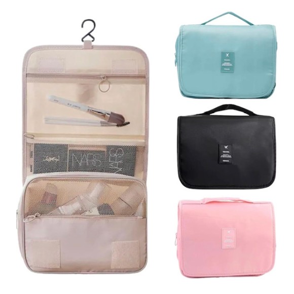 Descrição: Guarde as seus produtos de higiene pessoal, makes e acessórios nesta linda necessaire. Possui diversos bolsos internos, fecho em zíper e gancho para pendurar. Feito de material superleve e resistente, esta necessaire é a sua melhor companhia para viagens!