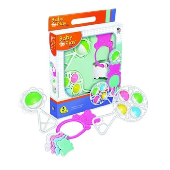O Baby Play Set traz carinho e diversão para o bebê! Um brinquedo que além de divertir, auxilia o desenvolvimento da coordenação motora e a percepção auditiva.