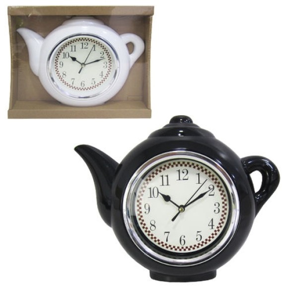 Relogio De Parede Redondo Modelo Bule Branco e Preto 28x24cm