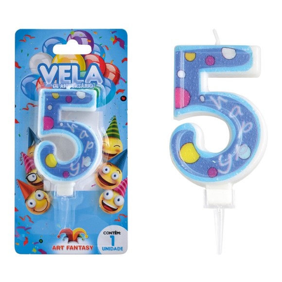 VELA DE ANIVERSÁRIO NÚMERO 5 COR AZUL ART FANTSY