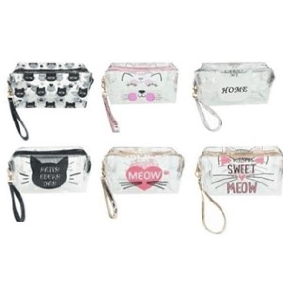 NECESSAIRE TRANSPARENTE COM DESENHOS DE GATO