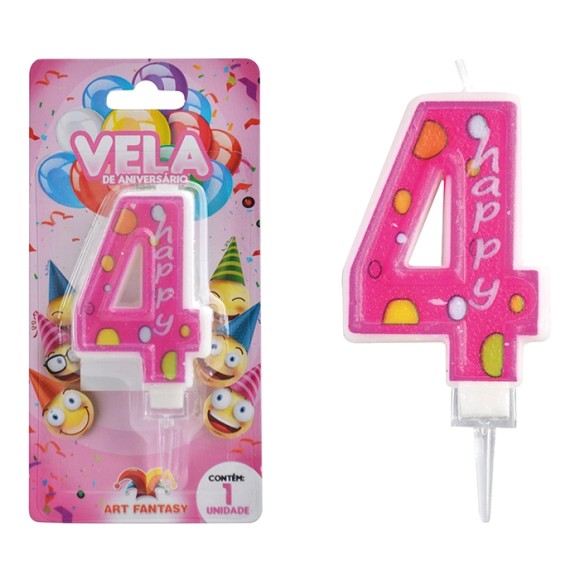 VELA DE ANIVERSÁRIO NÚMERO 4 COR ROSA ART FANTSY