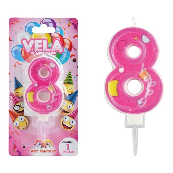 VELA DE ANIVERSÁRIO NÚMERO 8 COR ROSA ART FANTSY