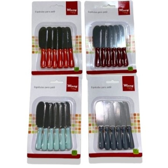 As Espátulas para patê, manteiga, geleia ou requeijão é fabricada em aço inox com cabo plástico colorido, além de ser extremamente charmoso e elegante possui um material durável, resistente, higiênico e de fácil limpeza. Com seus cabos coloridos facilita a identificação na hora de servir.
