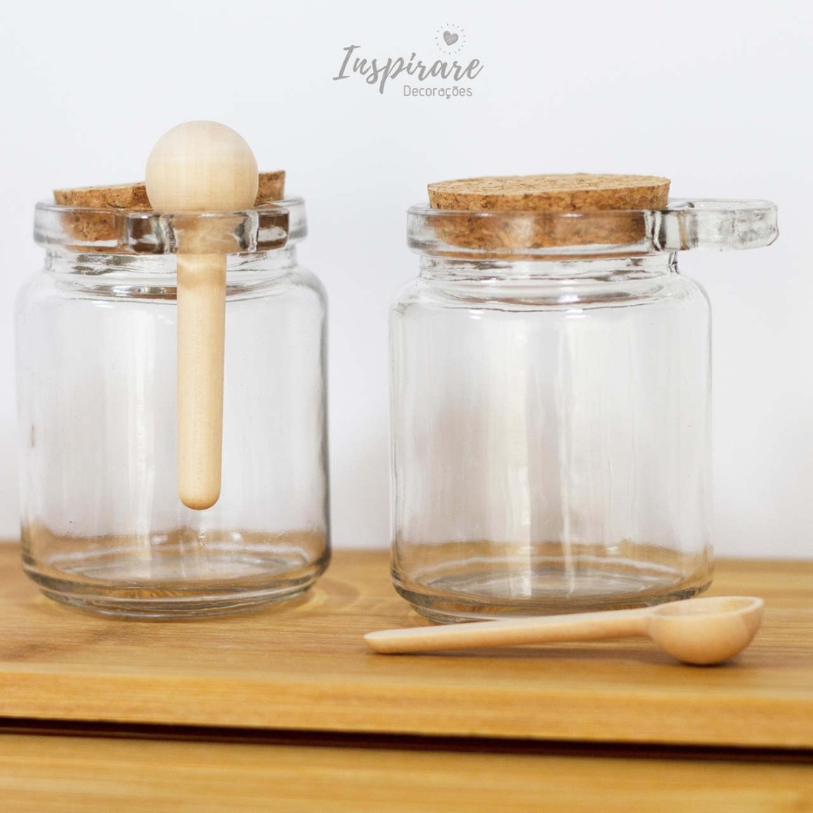 POTE DE VIDRO C/ COLHER BAMBU E TAMPA ROLHA 240ML - LYOR
