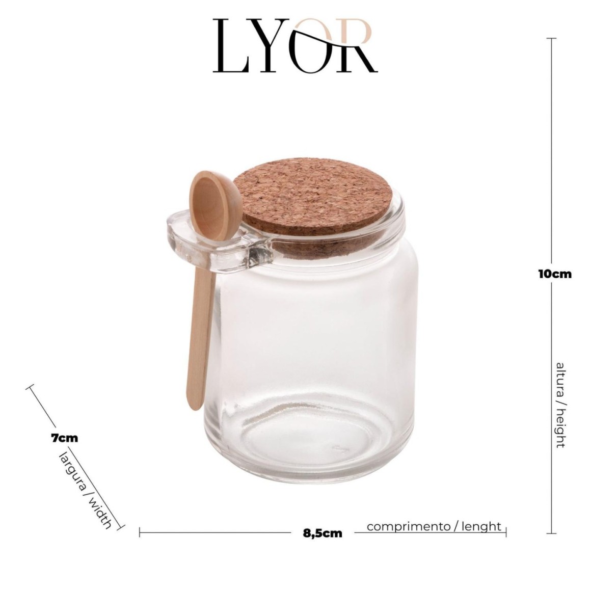 POTE DE VIDRO BOROSSILICATO C/ COLHER BAMBU E TAMPA ROLHA 240ML - LYOR