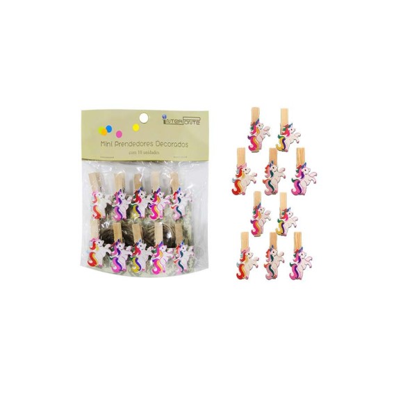 Mini Prendedores Decorativos Unicornio 10 unidades