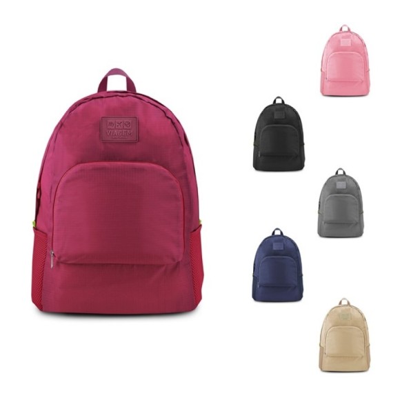 ATENÇÃO: Esta mochila não é adequada para o dia-a-dia. Por ser dobrável, possui um tecido fino e extremamente maleável, feito de poliéster, o que não permite carregar sobrepeso. Ideal para transportar roupas, entre outros produtos leves.