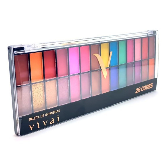 A Paleta de Sombras 28 Cores da Vivai é compacta e portátil, ideal para você levar em qualquer lugar em que precisar.