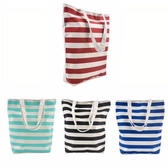 Bolsa Feminina Sacola Listrada 40Cm Grande Praia Compras