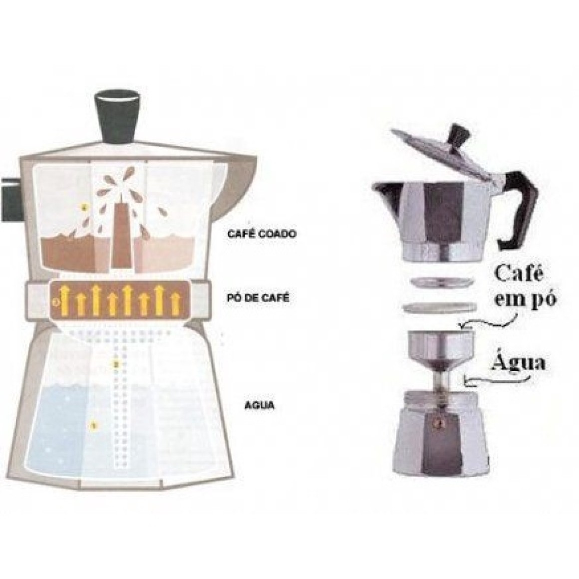 Cafeteira Italiana com infusor interno para preparação. Produto de excelente qualidade e praticidade para uso doméstico do dia a dia.