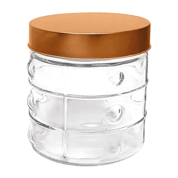 POTE DE VIDRO REDONDO QUADRICULADO COM TAMPA DE METAL COBRE/ROSE GOLD SPLENDO 800ML
