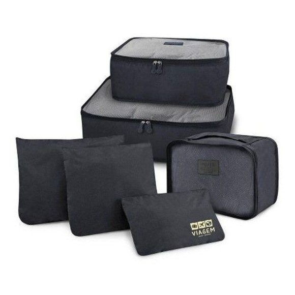 Kit De Organizadores de Malas de Viagem 6 Peças Preto Jacki Design