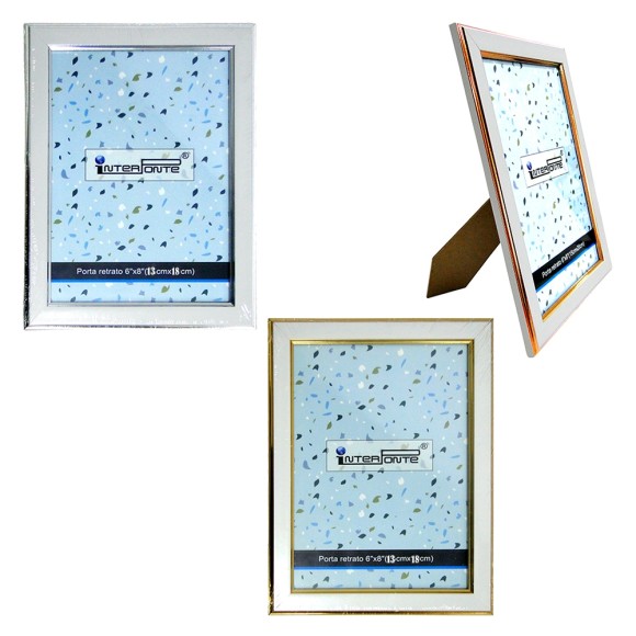 PORTA RETRATO 13X18 COM MOLDURA DE PLASTICO E FILETE METALIZADO